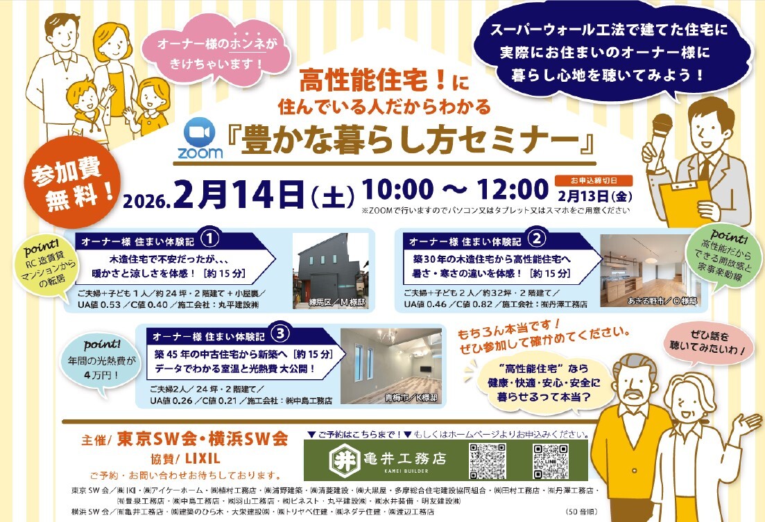 横浜スーパーウォール会が主催するオンライン(zoom)家づくり教室に参加してみませんか?